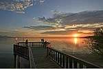Alternativ kommen Sie an der Uferpromenade 200 m nach dem Schifffsanlegesteg auf dem Weg von der Pizzeria Al Dente und Strandbad Chieming mit Töpferei über einen Anstieg zum großen Parkplatz mit Minigolfplatz - Nur mit Elektro Rollstuhl oder fitter Begleitung geeignet. Nach 100 m erreichen Sie das Café Sonnendeck mit Sonnenterrasse und Wintergarten direkt am Chiemsee. Barrierefreies WC ist vorhanden.