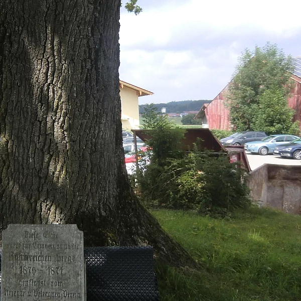 Diese Eiche wurde in Gedenken der gefallenen Kameraden sowie der Siege des Krieges 1870/71 gepflanzt.